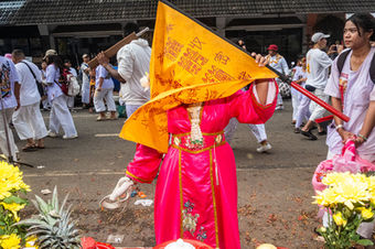 The festival begins with a parade from each participating temple around the city center. The streets are lined with colorful decorations and flags as people walk through carrying statues of gods or goddesses while chanting prayers and playing music. This procession symbolizes the purification of the body and soul before entering into a period of abstinence from meat consumption during the festival days.